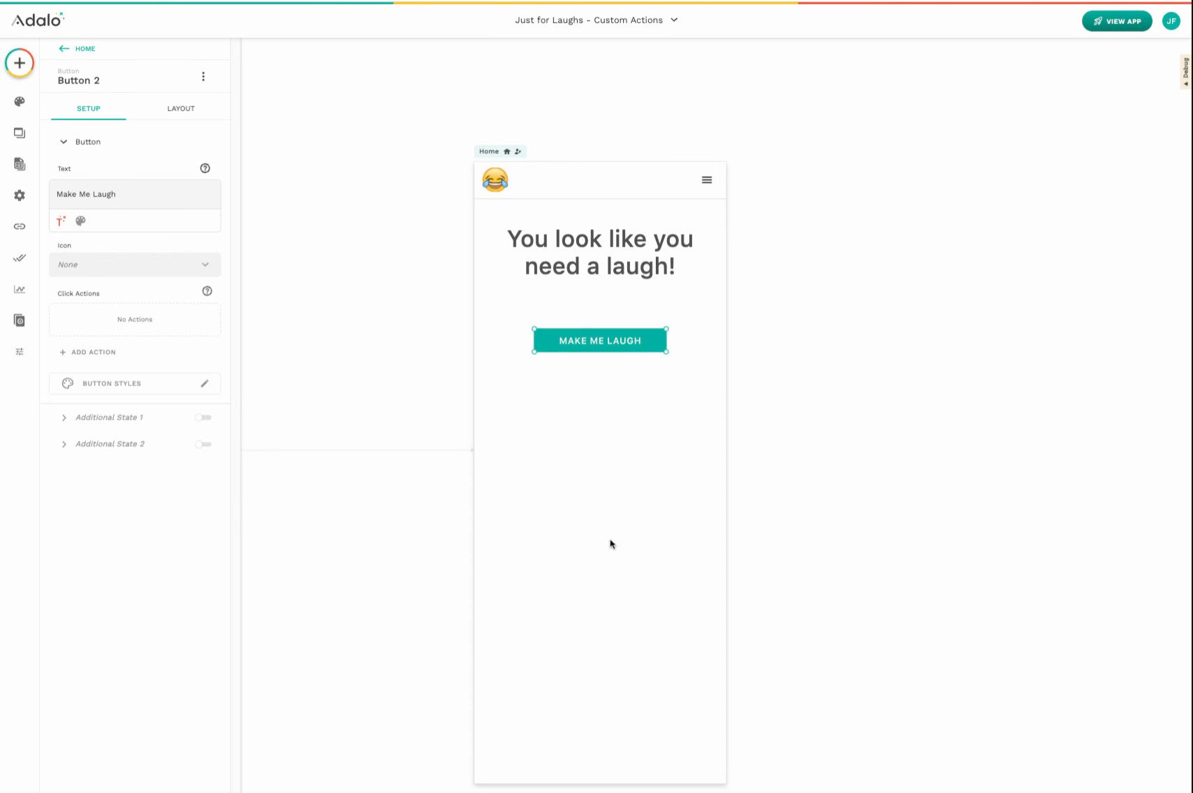 On your screen, add a button and label it **“Make Me Laugh.”**