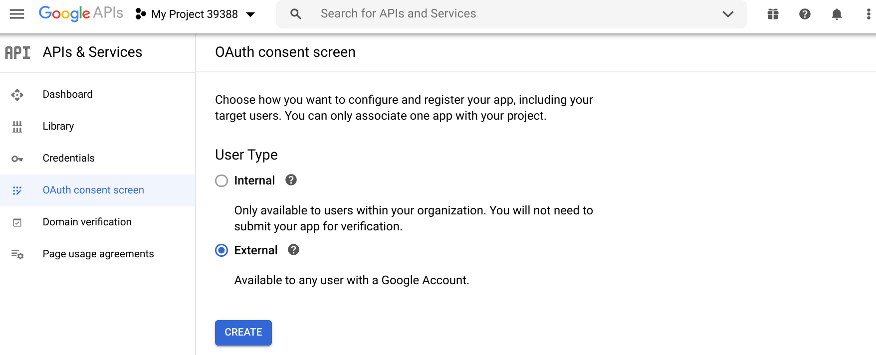 **7.)** <https://console.developers.google.com/apis/credentials/consent>に移動します。