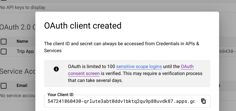 **31.)** その後、**Create** をクリックします。Adalo に貼り付ける必要はありませんが、Android で Google Sign In が機能するためには作成しておく必要があります。