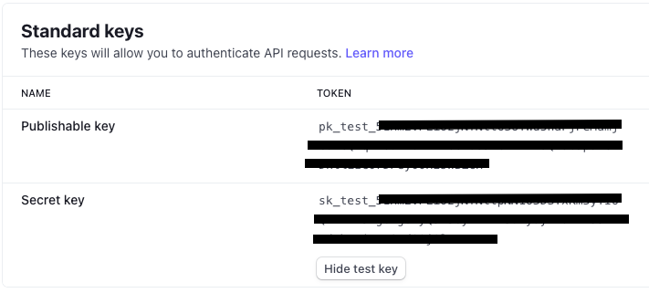 <figure><img src="https://797861279-files.gitbook.io/~/files/v0/b/gitbook-x-prod.appspot.com/o/spaces%2F4EFNSNZLMs5AZ70x2P33%2Fuploads%2Fgit-blob-61302f1025a3adc790eaf7dde9129f9658ebe34b%2FStripe%20Test%20Keys?alt=media" alt=""><figcaption><p>Stripeテストキーの例</p></figcaption></figure>