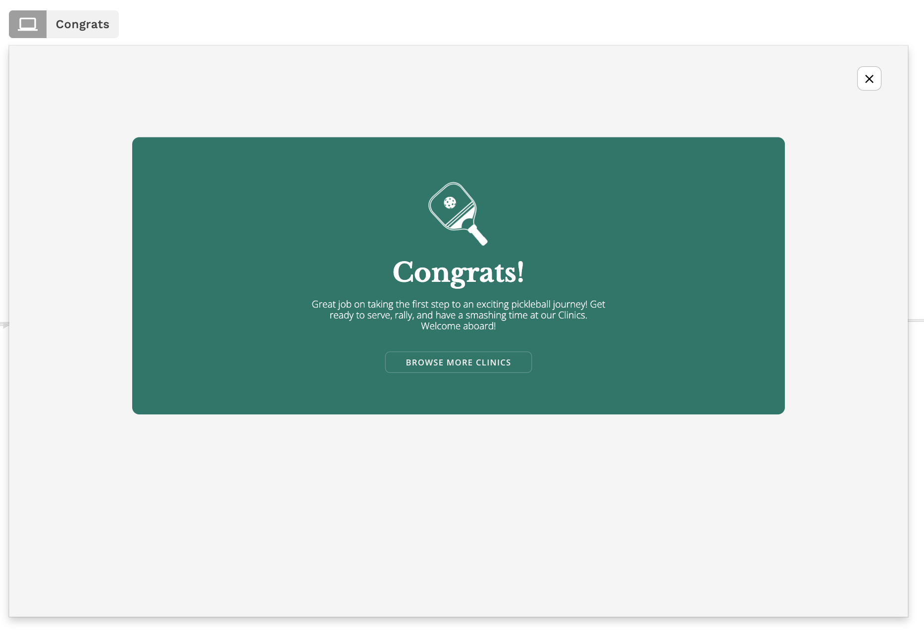 シームレスな顧客体験を作るために、常にUXのベストプラクティスを使用し、「成功状態」と呼ばれるものを含めることをお勧めします。これにより、ユーザーがすべてが予想通りに機能したことを認識しやすくなります。この場合、支払いが完了し、クラスの予約が確定したことを示します。