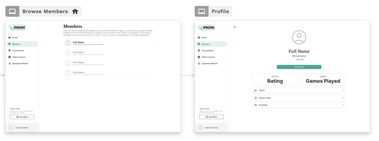 メンバーを閲覧するシンプルなフローは、いくつかの異なるアプリで見られ、2つの画面で構成されています — 1つはすべてのメンバーのリストが表示される画面で、もう1つは特定のユーザーの詳細を表示する画面です。