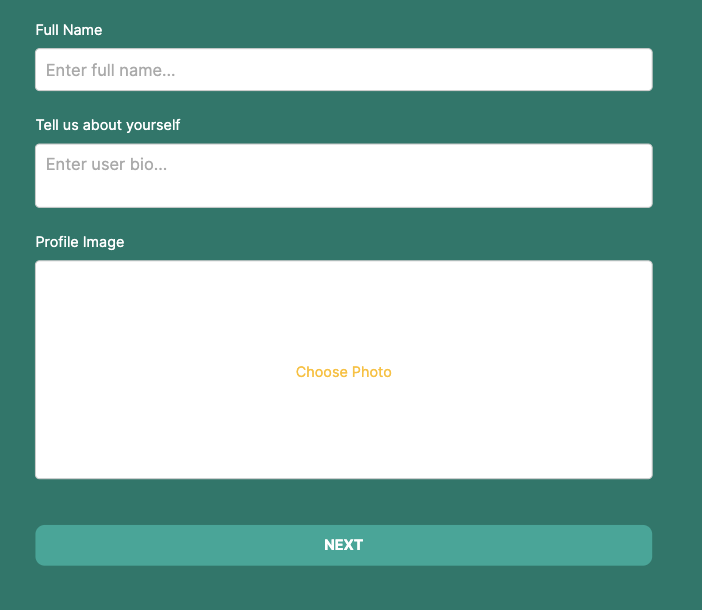 ユーザーコレクションから表示できるプロパティは他にもありますが、このフォームはサインアッププロセス中に入力されていない情報を収集します — 例えば、プロフィール画像やバイオです。