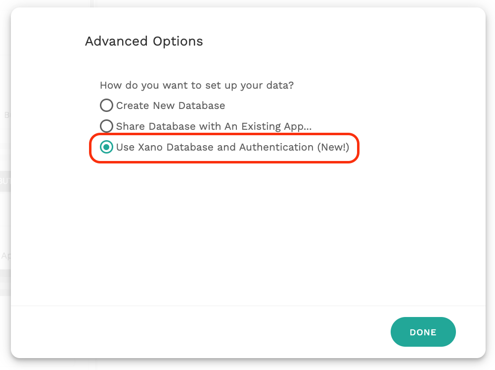 #### 6. 「Xanoデータベースと認証を使用」オプションを選択し、次にクリックします。