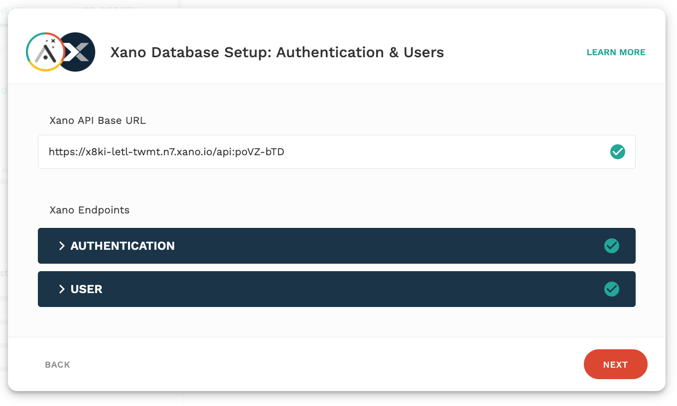 #### 8. AdaloはXanoにアクセスし、Xanoのユーザーおよび認証エンドポイントおよびテーブルを取得してユーザーのサインアップとログインを行うことができます。プルが完了したら、次に進んでください。
