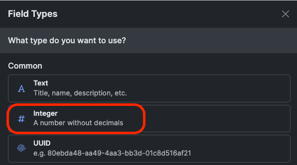 #### 7. 右メニューでIntegerオプションをクリックします。