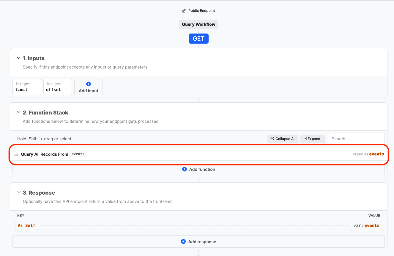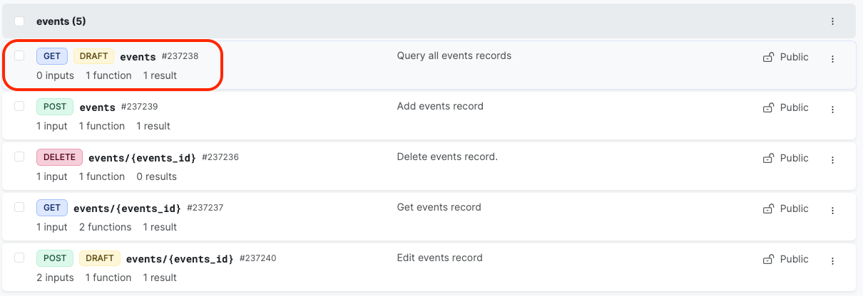 #### 5. Adaloのリストに対応するテーブルの「GET All」エンドポイントを見つけ、クリックして開きます。