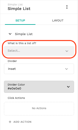 #### 1. プログレッシブローディング（ページネーション）をオンにするには、まず最初にリストのデータ型を最初のドロップダウンで設定してください。