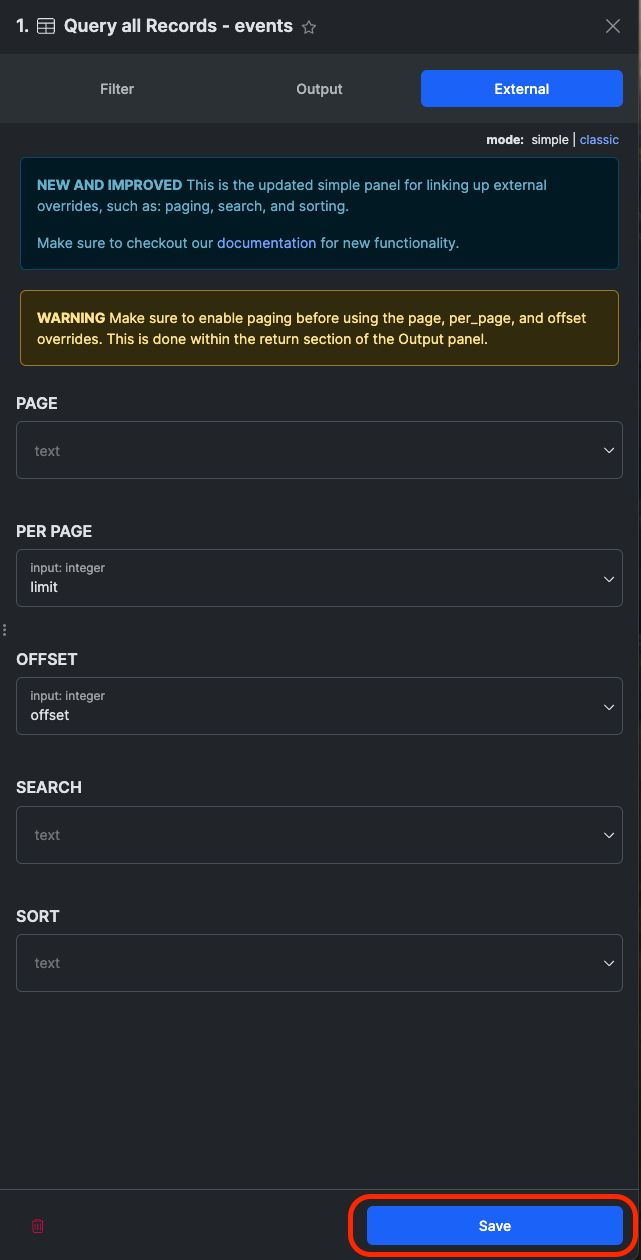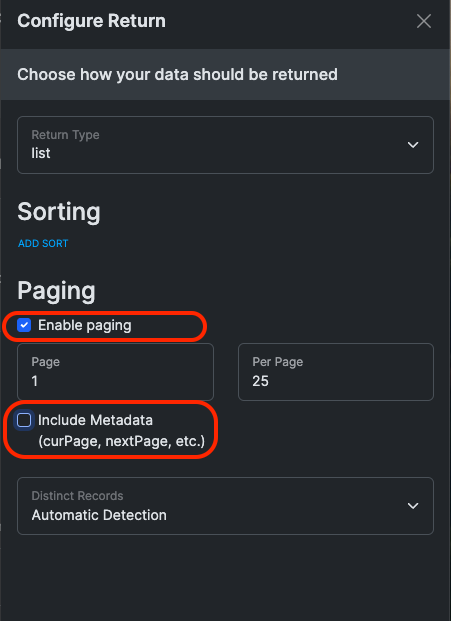 #### 14. "ページングを有効にする" の横にあるボックスをチェックし、"メタデータを含める" のチェックを外してから保存をクリックします。