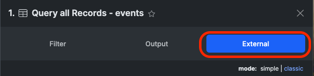 #### 15. メニューの上部にある外部タブをクリックします。