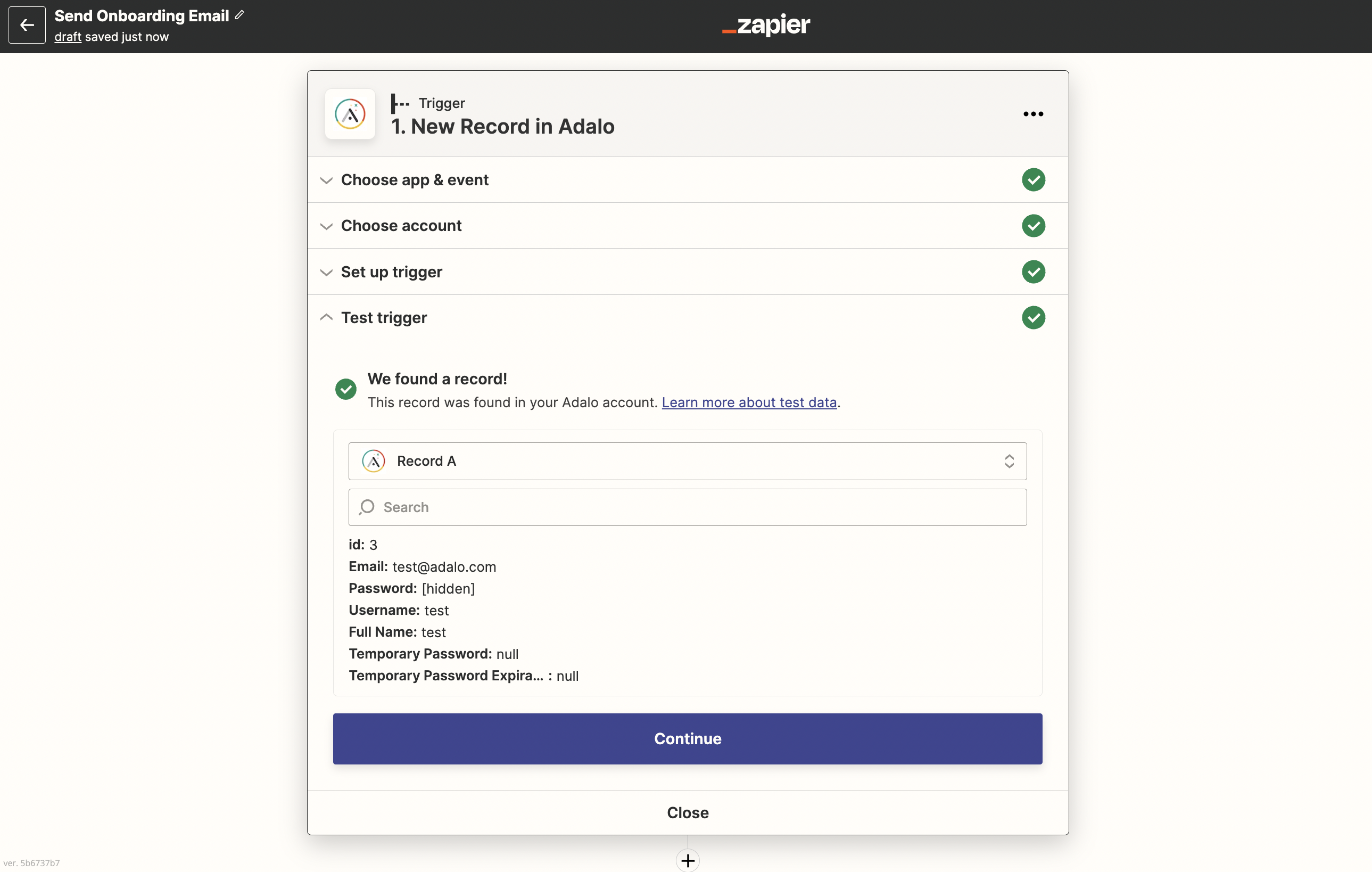 したがって、上記の例の逆の操作を行うこともできます。アクションが発生したときに、Zapierが自動的にAdaloアプリ内のレコードを作成または更新し、前のトリガーからの情報でレコードのプロパティを入力できるように指定できます。新しいものを作成する代わりに、アクションをAdaloレコードの更新にすることもできます！