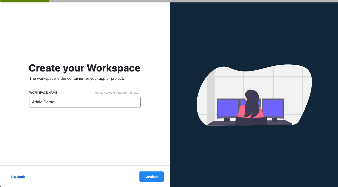 #### 3. Create a name for your workspace or app, then click Continue.&#x20;