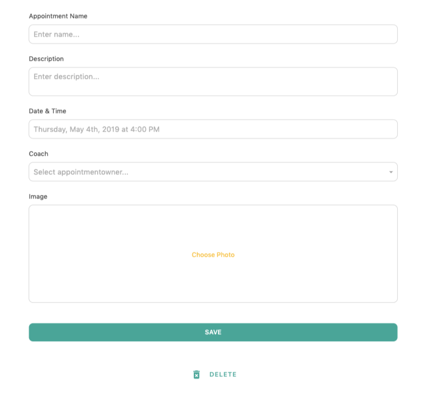 The coach is also able to delete the appointment from this screen, as well.
