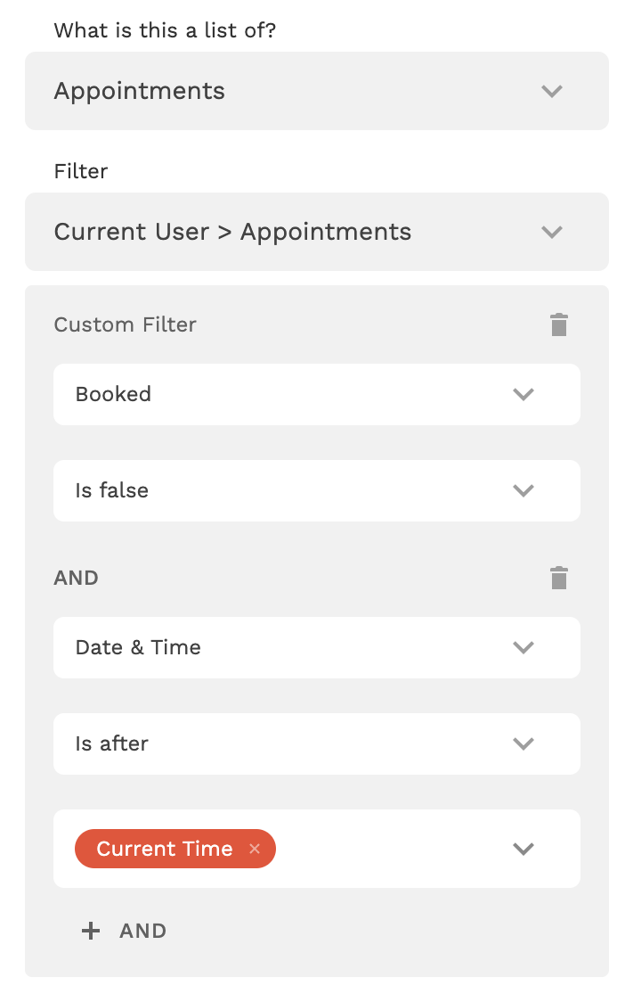 * AND the Date & Time for the appointments shown must be after the CURRENT TIME, as in, the time that the user is looking at the list.