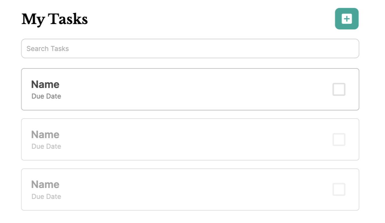 This button appears on the ‘Home’ Screen & the ‘Team Tasks’ Screen. It will be used to create a new task.