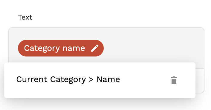 Each component is connected to the database to display the ‘Name’ from the ‘Current Category’ and the ‘Long Description’ from the ‘Current Category.’ This is known as Magic Text.
