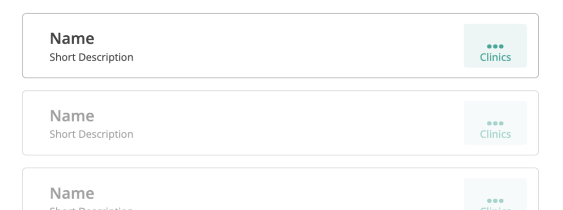 The side navigation should appear on each screen you intend for the user to navigate. This is important to help users find the information they are looking for. In this feature template, on this screen, you will notice the “Clinics” Menu Item is highlighted. This is to denote where, in the app, the user is.
