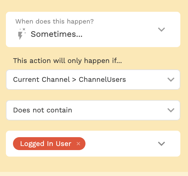 * ⚡ Update Logged In User > Channels > Add Current Channel *but only when* the “Current Channel > ChannelUsers” does not contain the Logged In User.