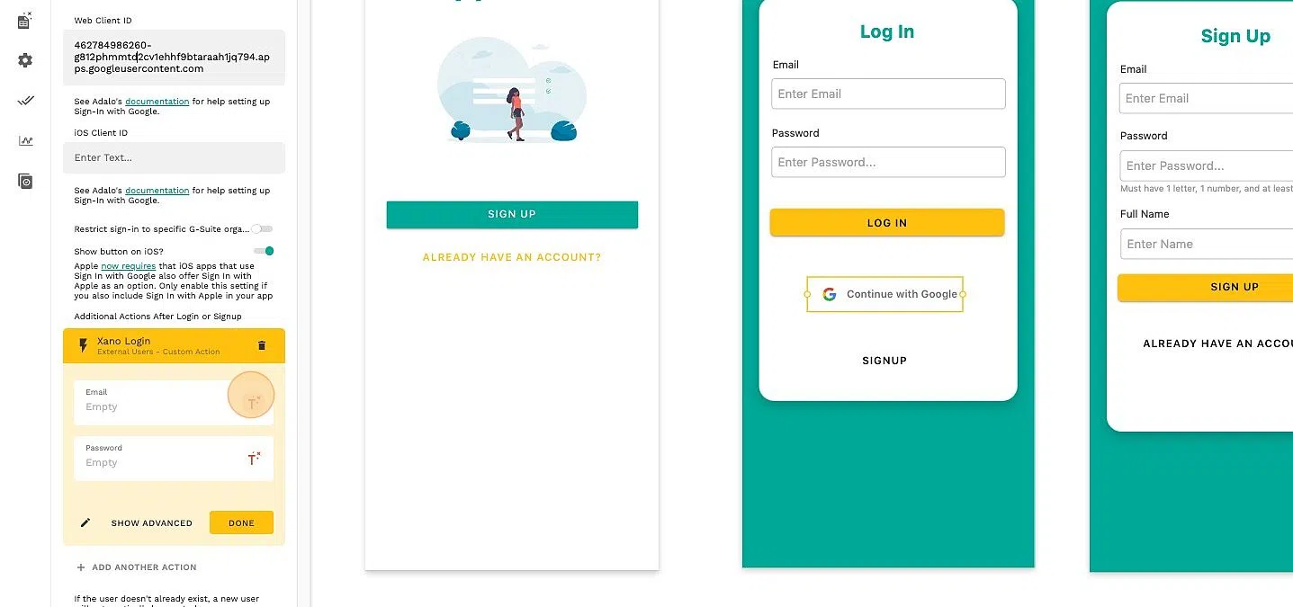 * Follow the steps in the [Google Sign In Help Doc](https://help.adalo.com/component-basics/marketplace-components/sign-in-with-google)