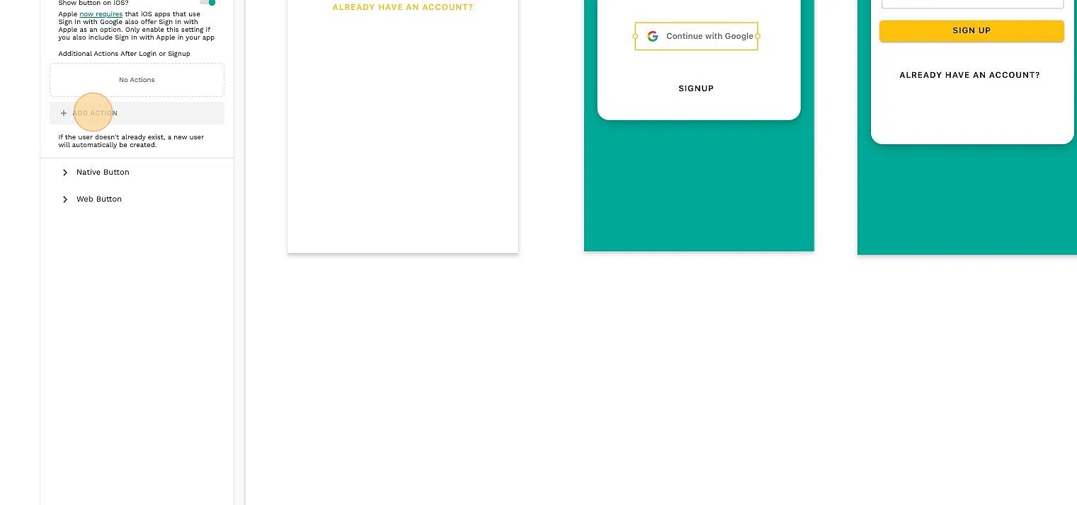 **1.)**  Add new 'User Login' Action by selecting either "**Xano Signup**" or "**Xano Login"**